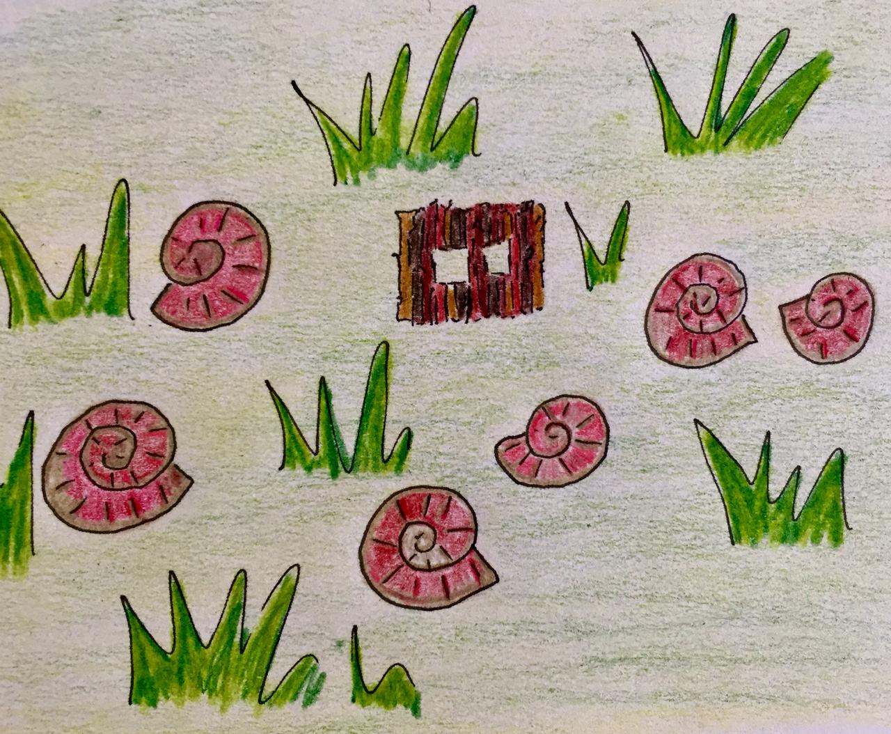 Un tiempo después se ubicó debajo de las hojas de una gran planta de helecho, -Que agradable humedad la de las raíces. Estando ahí se sorprendió al ver pasar una familia de caracoles. Aunque había escuchado de estas misteriosas “babosas libres y mutantes”, así las llamaban en su familia, nunca había visto una, menos se imaginó ver un grupo de ellas.